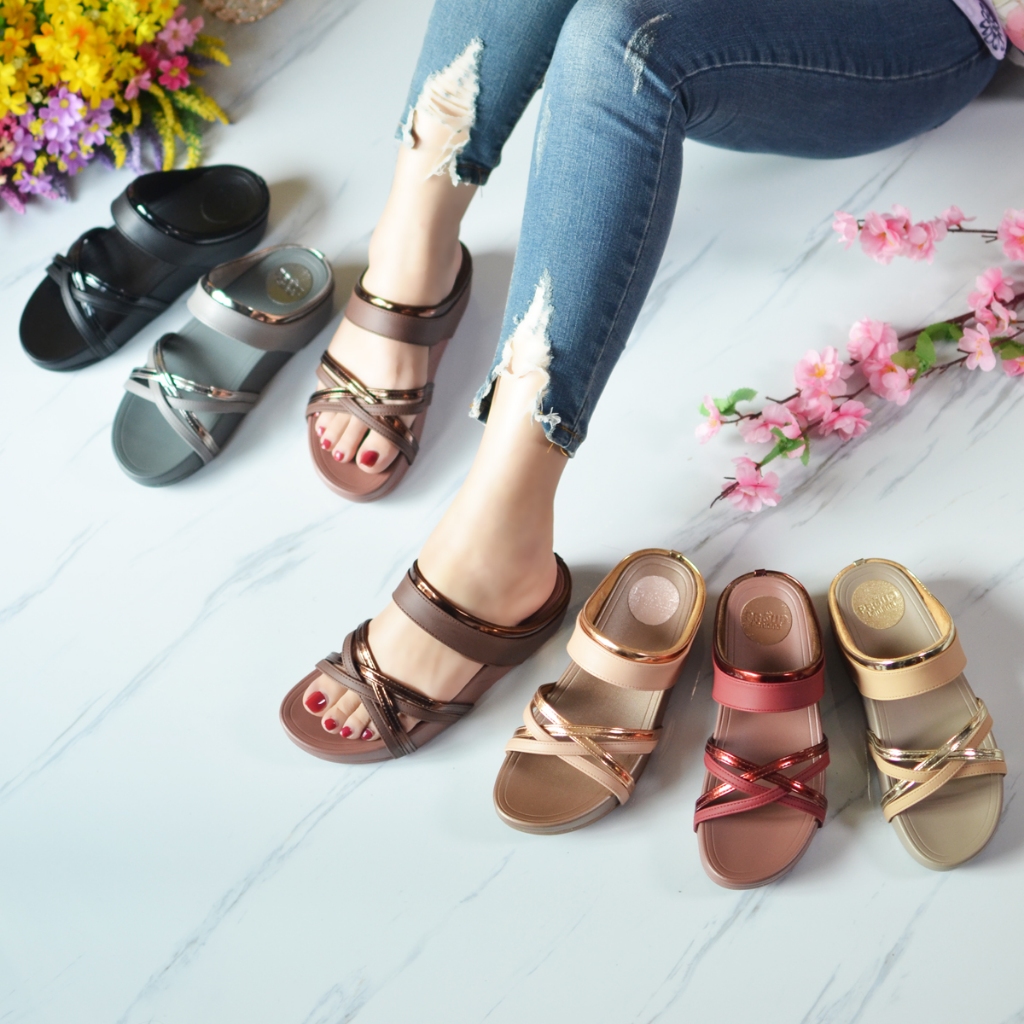 D13 #รองเท้าสุขภาพ สายคาดไขว้ พร้อมลายดอกไม้สุดคิวท์ น่ารักแต่แอบแซ่บ SHOELISM