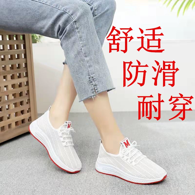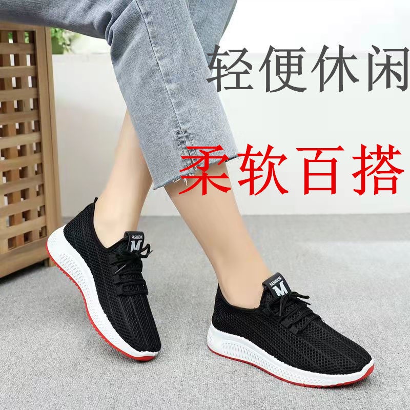 เก่าปักกิ่งรองเท้าผ้าฤดูใบไม้ผลิฤดูใบไม้ร่วงระบายอากาศผู้หญิงรองเท้าตาข่ายวัยกลางคนผู้สูงอายุ อ่อนนุ่ม-พื้นรองเท้า รองเท้าแม่กันลื่น เรา