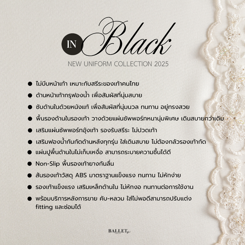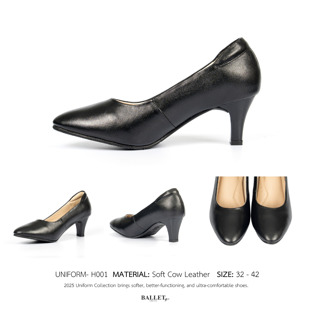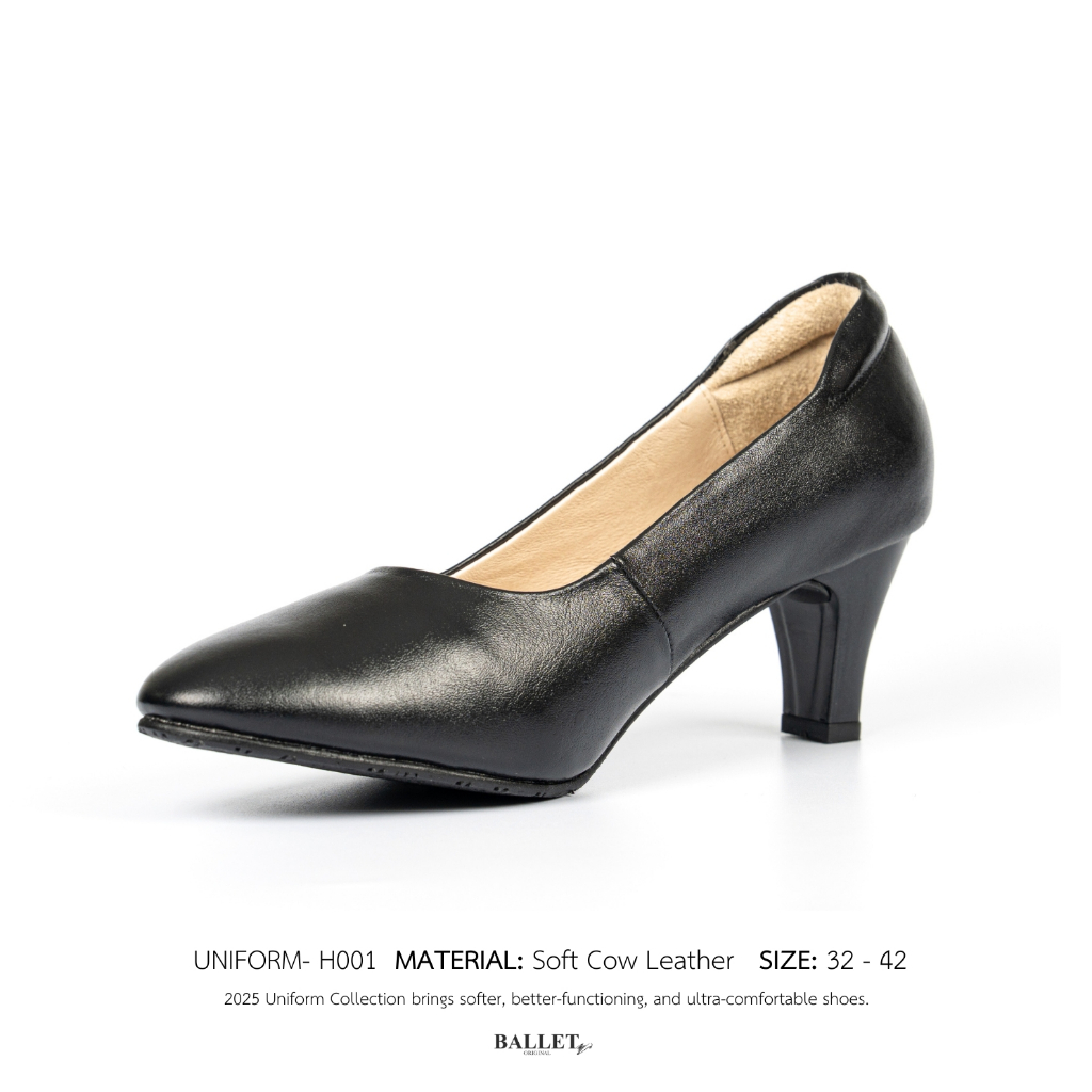 Ballet Shoes Original – รองเท้าคัทชูหนังแท้ Uniform รุ่น H001 สีดำ (ส้นสูง 2 นิ้ว)