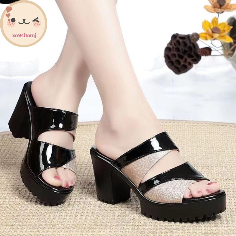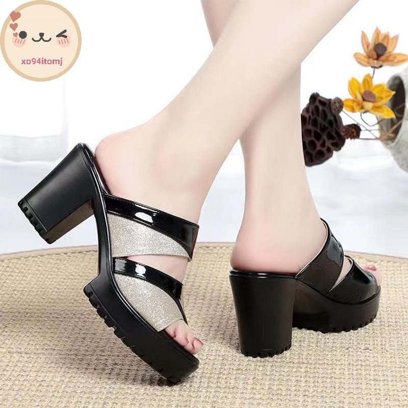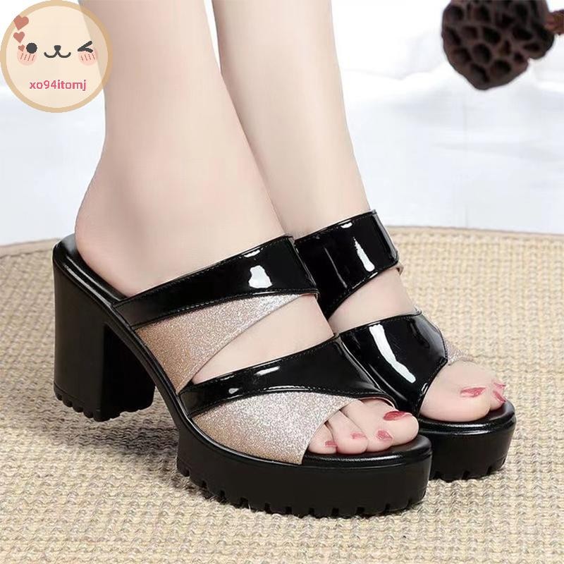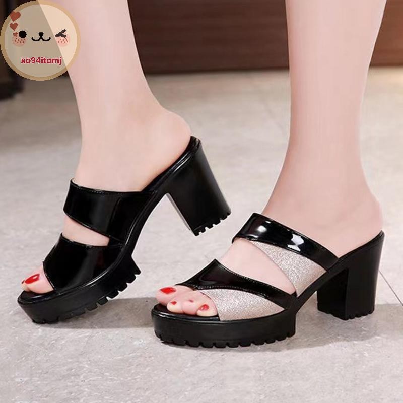 XOTOMJ 2025 ฤดูร้อนใหม่แฟชั่นรองเท้าแตะหนาปานกลางส้นหนากันน้ํา Hollow รองเท้าแตะปากปลารองเท้าแตะสําหรับผู้หญิงสวมใส่ TH