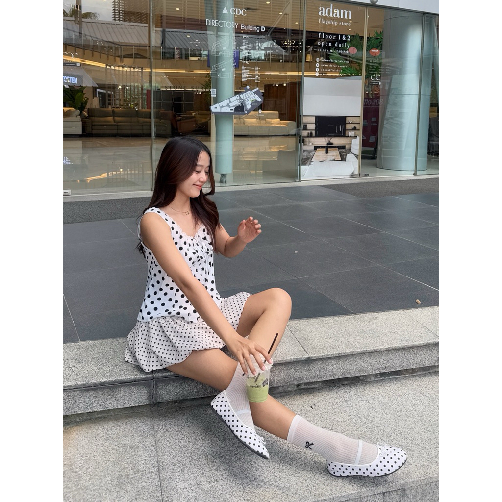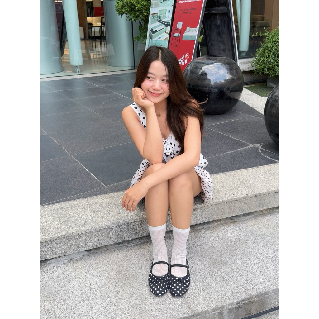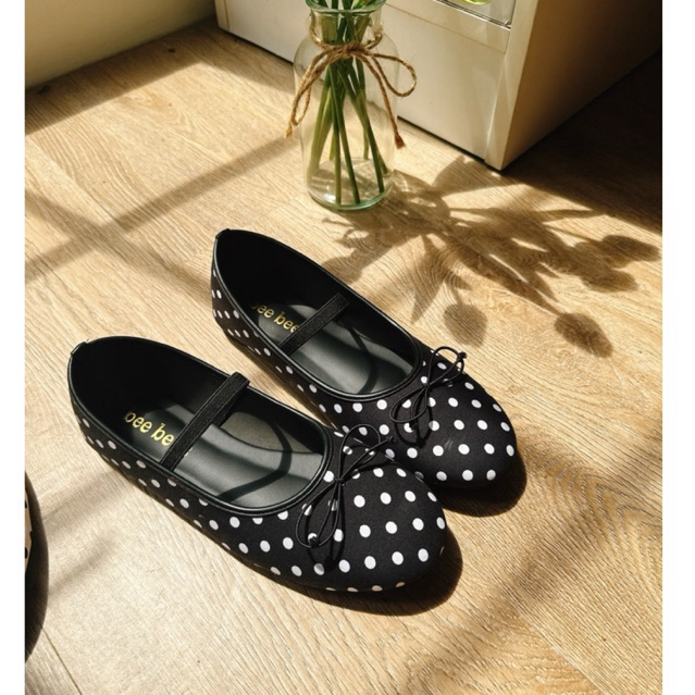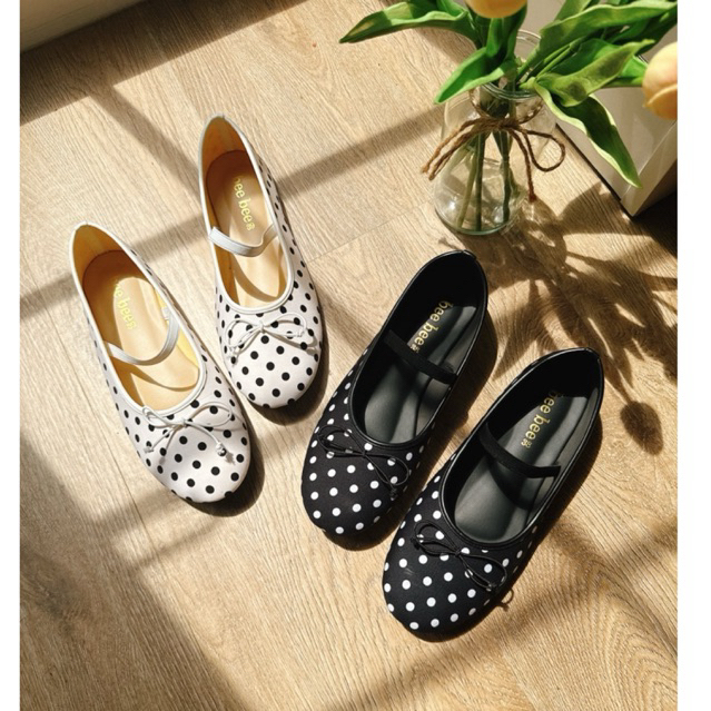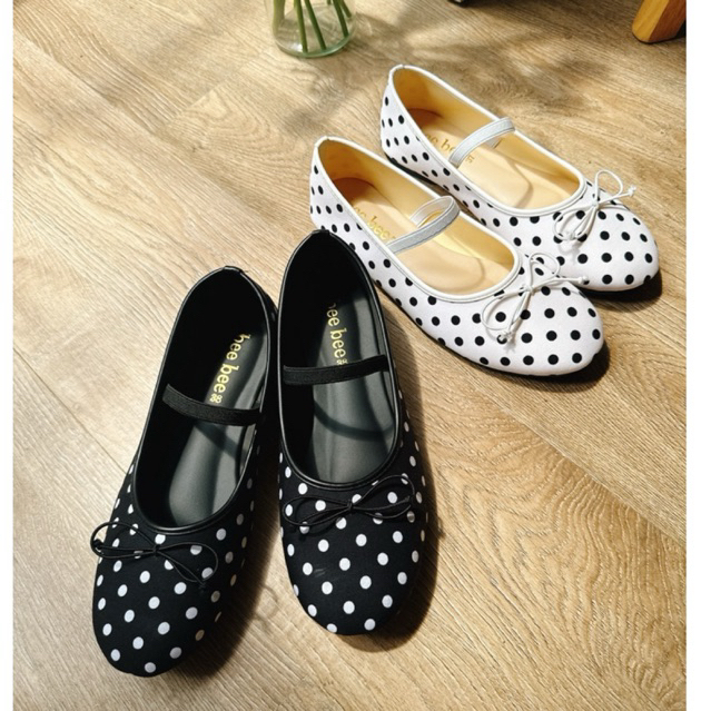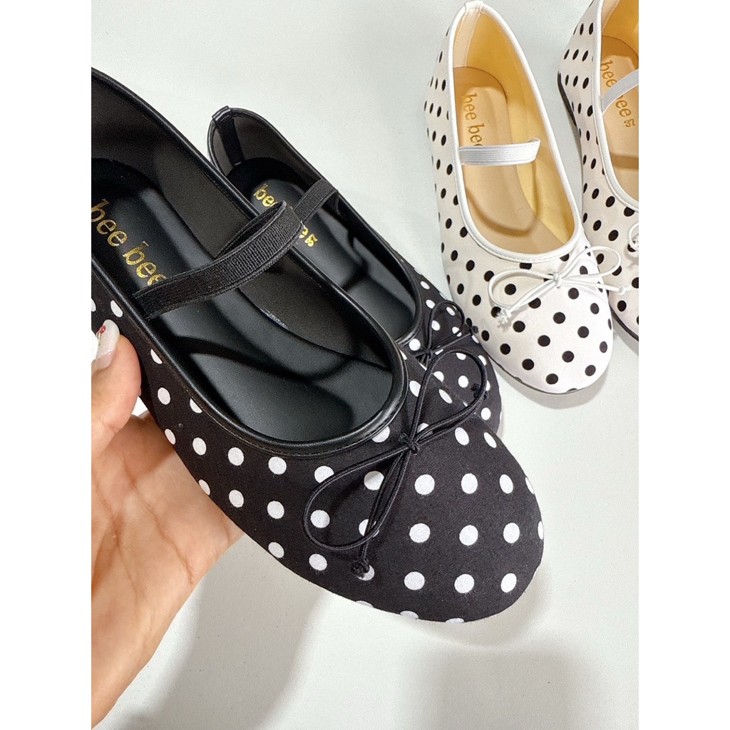 รองเท้าแมรี่เจนลายจุดแต่งโบน่ารักแต่งสายคาดยางยืด รหัสN-02ทรงสวยใส่สบาย
