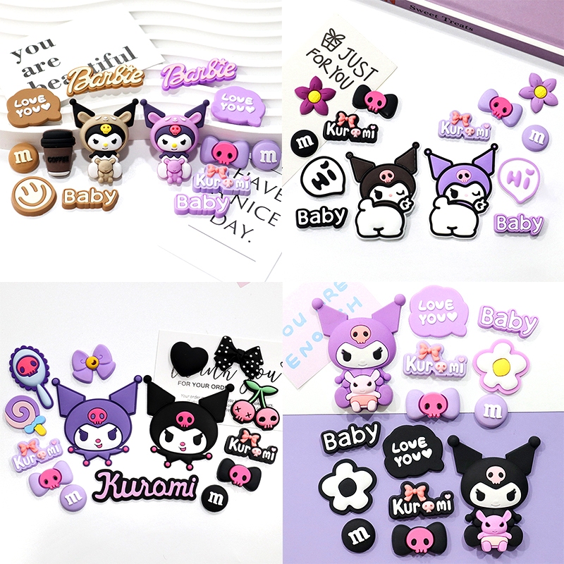 [หัวเข็มขัดรองเท้ายางนุ่ม] หัวเข็มขัดรองเท้า Kuromi Hole รวมการ์ตูน Sanrio Kuromi รองเท้าดอกไม้ diy วัสดุแพคเกจ PVC ยางนุ่มเคสโทรศัพท์/รองเท้าแตะ/ถ้วย/Patch croc รองเท้าหัวเข็มขัด