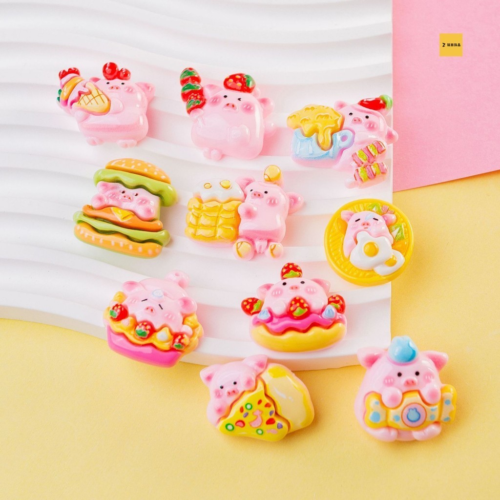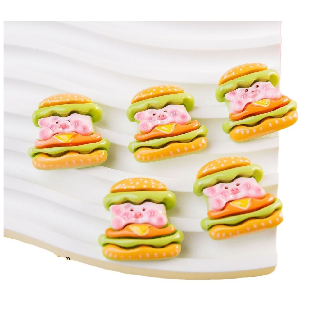 [3 #] กาวติดรองเท้า เรซิ่น รูปหมู เบอร์เกอร์ น่ารัก อุปกรณ์เสริม สําหรับเครื่องประดับ diy ZQ