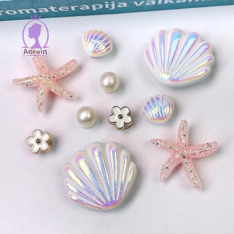 [2 #] Jibbitz Crocs สติกเกอร์เรซิ่น รูปโบว์ ดอกไม้ สีรุ้ง สําหรับติดตกแต่งตู้เย็น เคสโทรศัพท์ รองเท้า diy QP