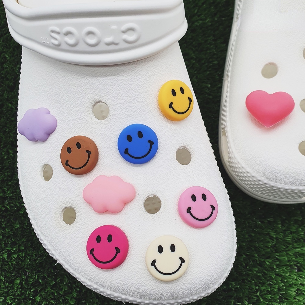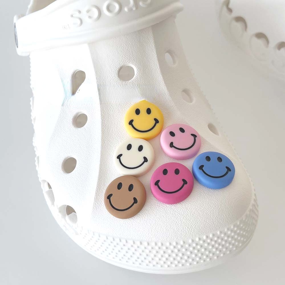 CROCS [Charming Deco] กระดุมรูปหน้ายิ้มน่ารัก 6 สี อุปกรณ์เสริม สําหรับตกแต่งรองเท้าผ้าใบ Diy