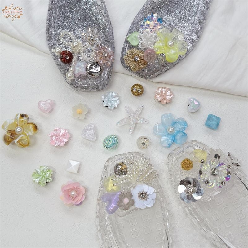 Ank 1 ชุดเกาหลีแฟชั่นรองเท้าคริสตัลขั้นสูง Handmade ลูกปัดดอกไม้ Pearl Bow เลื่อม DIY ที่ถอดออกได้รองเท้าอุปกรณ์ตกแต่ง EN