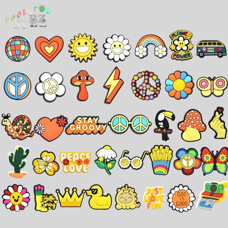 ดอกไม้สายรุ้ง DIY Jibbitz สําหรับ Crocs รองเท้า PVC การ์ตูน Crocs อุปกรณ์เสริมรองเท้าฤดูร้อนรองเท้าอุปกรณ์เสริมหัวเข็มขัดรองเท้าเด็กของขวัญ