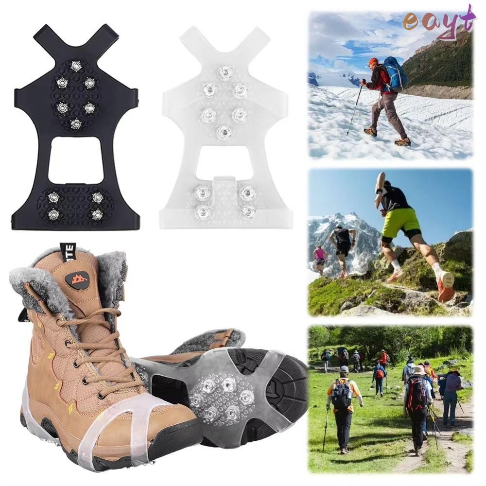 กิน กริปเปอร์น้ําแข็ง 1คู่,10ฟันลื่นรองเท้าครอบคลุม,ทนทานสวมทน ก ริปเปอร์ หิมะแหลมสําหรับหิมะเดินปีนเขารองเท้