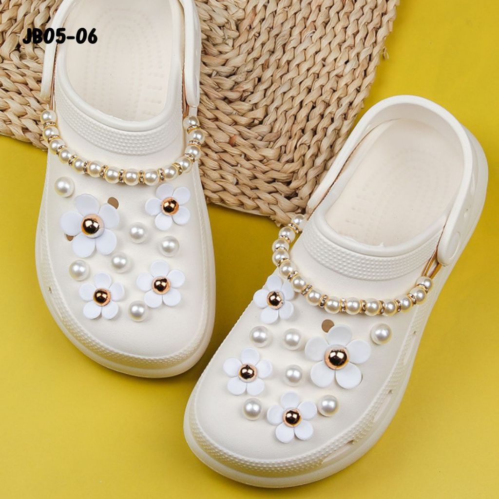จิบติดรองเท้า ตัวติดรองเท้า Diy รองเท้า ติดกระเป๋า ลายดอกไม้