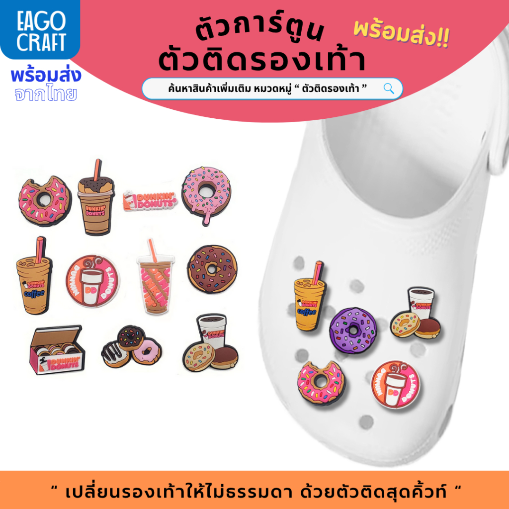 ตัวติดรองเท้า Pvc ตัวการ์ตูน โดนัท สำหรับตกแต่ง Diy รองเท้าหัวโต ติดง่าย น่ารัก