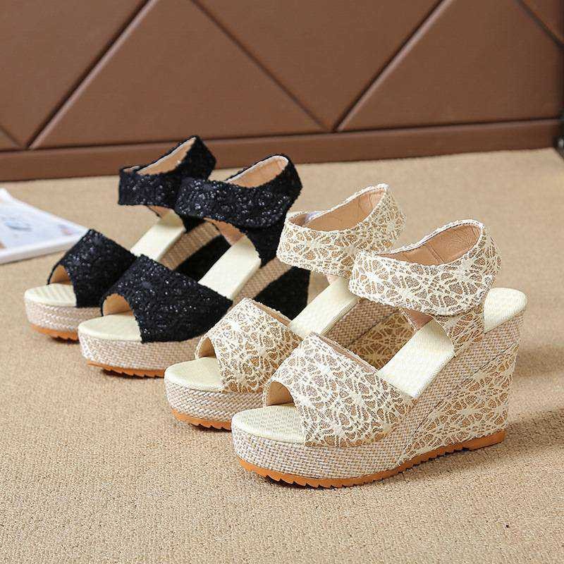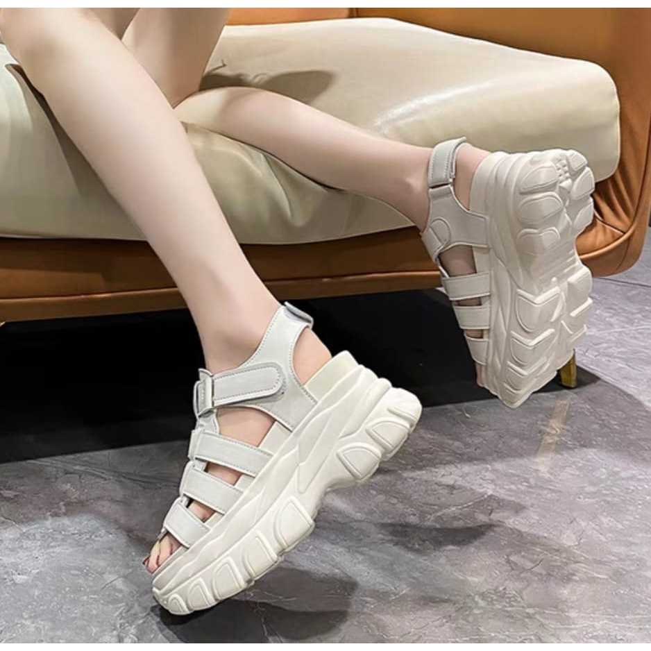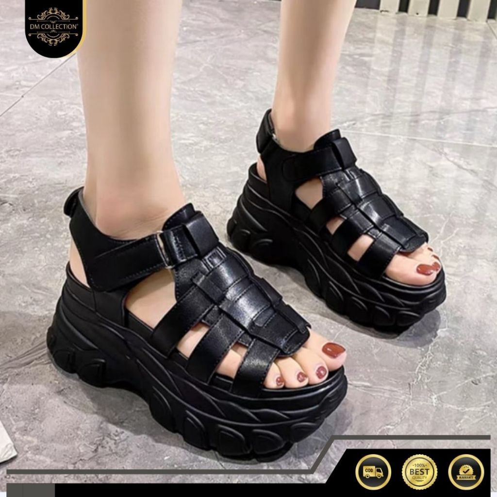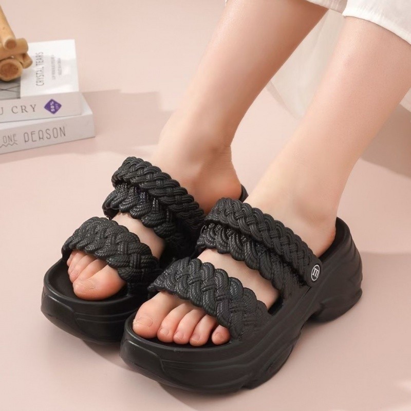 DM-SHOPP รองเท้าแตะส้นเตารีดลําลองผู้หญิง ส้น 6 ซม. รุ่นสายถักล่าสุด หัวเข็มขัด Velcro AP 034