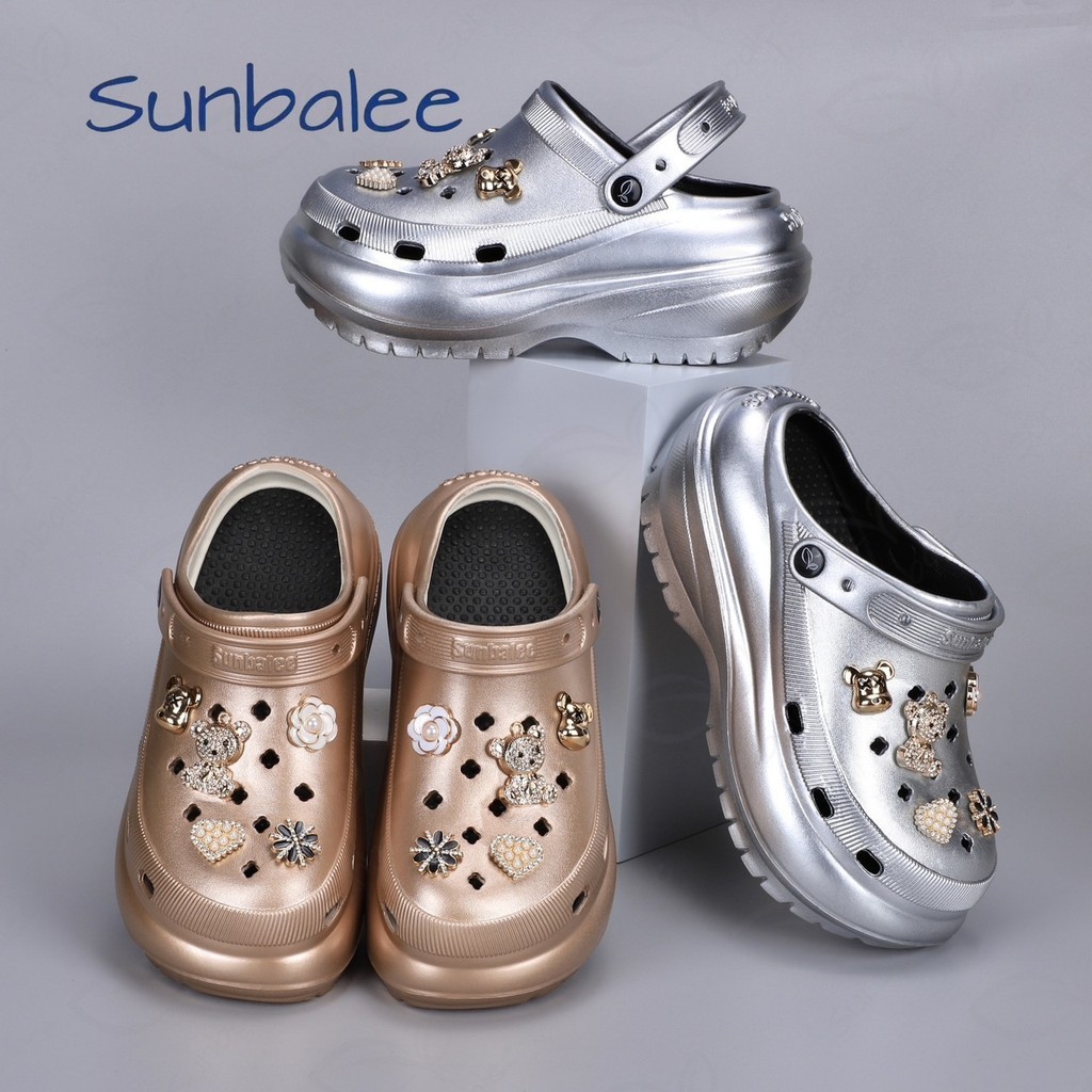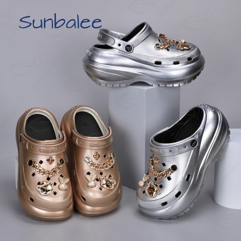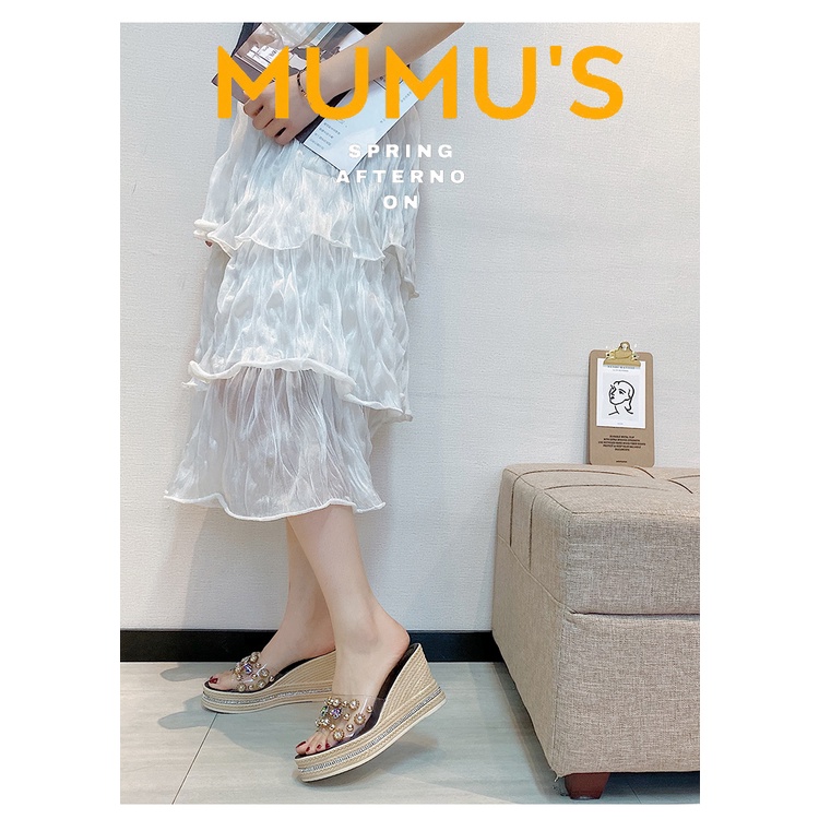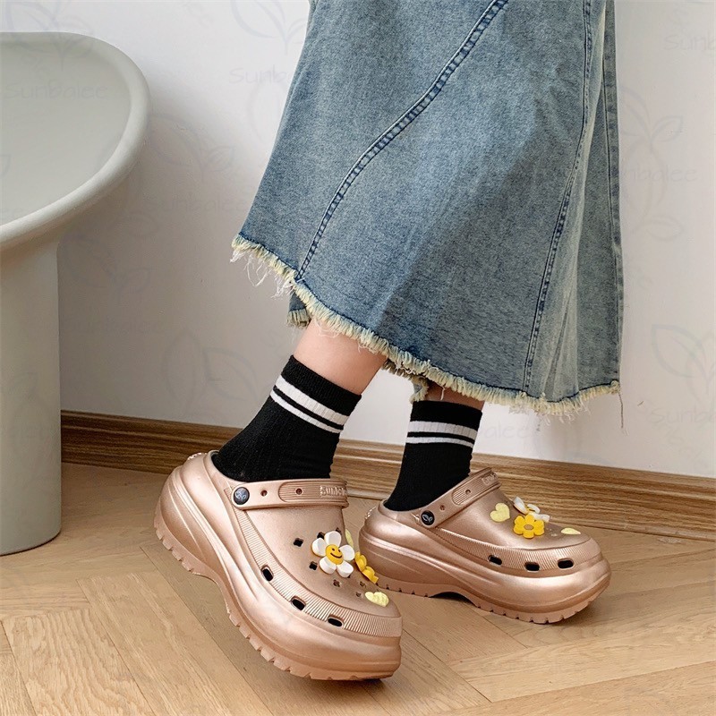 AJAYGNA รองเท้าหัวโต รองเท้าผู้หญิงแฟชั่น ส้นสูง หนา 7 ซม พร้อมตัวติด EVA SUN8694