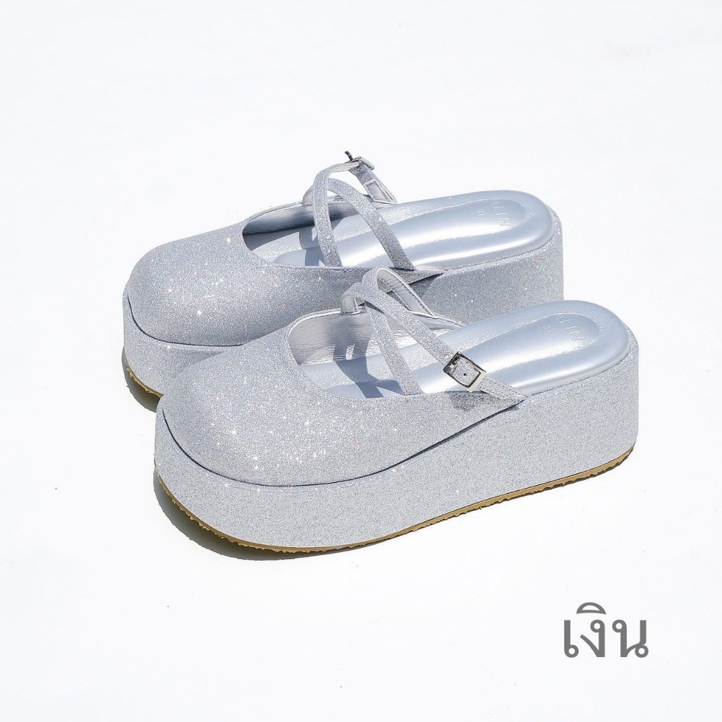 HM 55รองเท้าแฟชั่นผู้หญิงใหม่ล่าสุด ส้นเตารีด-ส้นตึก สูง 4 นิ้ว ดีไซด์เก๋ วิบวับมี 2 สี H33