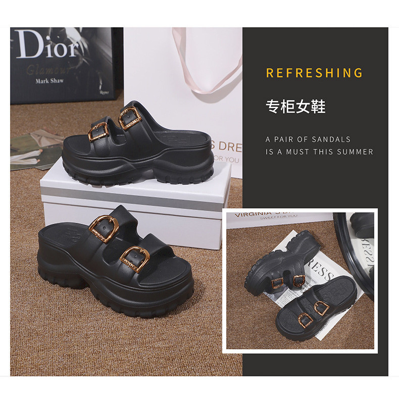 「DR」 รองเท้าแตะผู้หญิง รองเท้าแตะพื้นหนาขายดี ภาพถ่ายชายหาดฤดูร้อนสไตล์ใหม่ลําลองทุกการแข่งขัน EVA กันลื่นพื้นนุ่มสบายระบายอากาศกีฬากลางแจ้งขนาด: 36-45