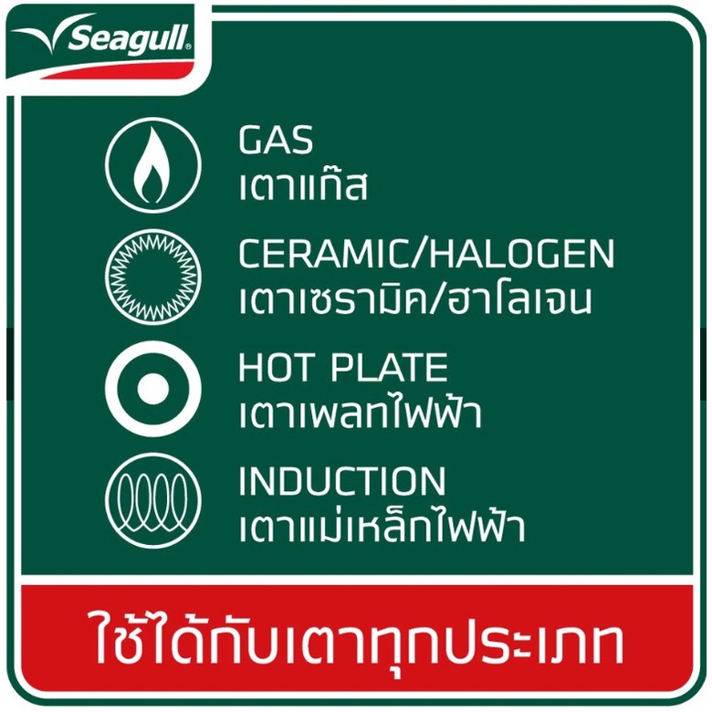 ใช้ได้กับเตาทุกประเภทรวมถึง *เตาแม่เหล็กไฟฟ้า*(ใช้ได้นะจ๊ะ)