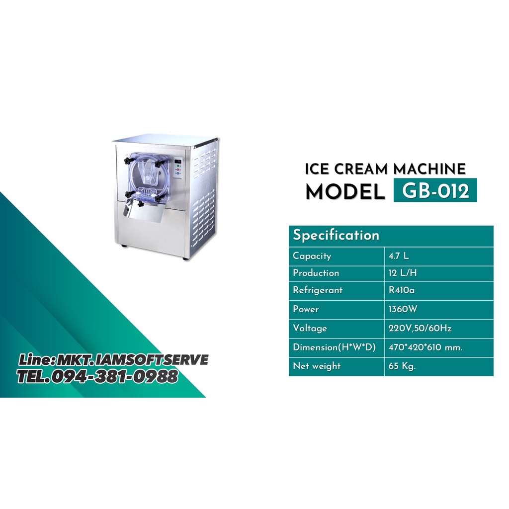 เครื่องทำไอศครีมฮาร์ดเสิร์ฟ รุ่น GB-012 (112Y)เหมาะสำหรับคนที่กำลังจะเริ่มต้นทำธุรกิจไอศครีมและคนที่ทำธุรกิจอยู่แล้ว และต