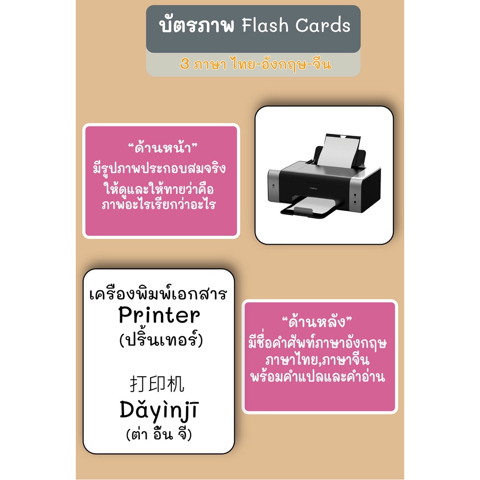 บัตรภาพ Flash Cards 3 ภาษา ไทย-อังกฤษ-จีน