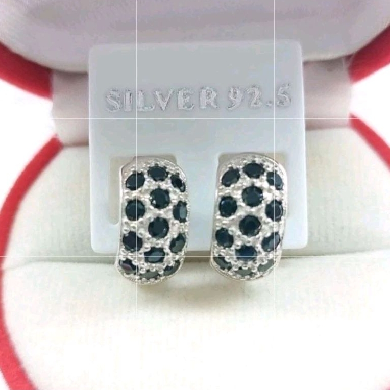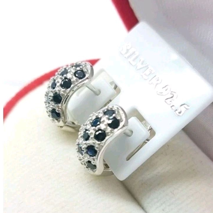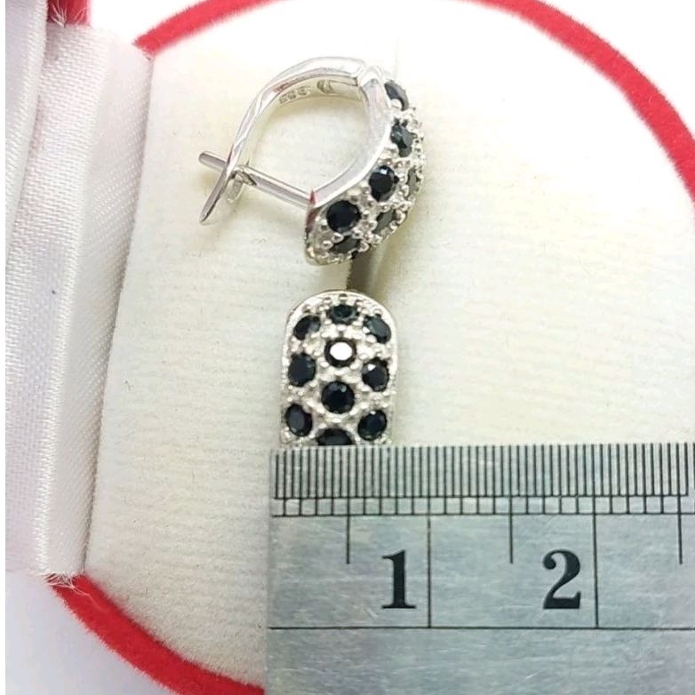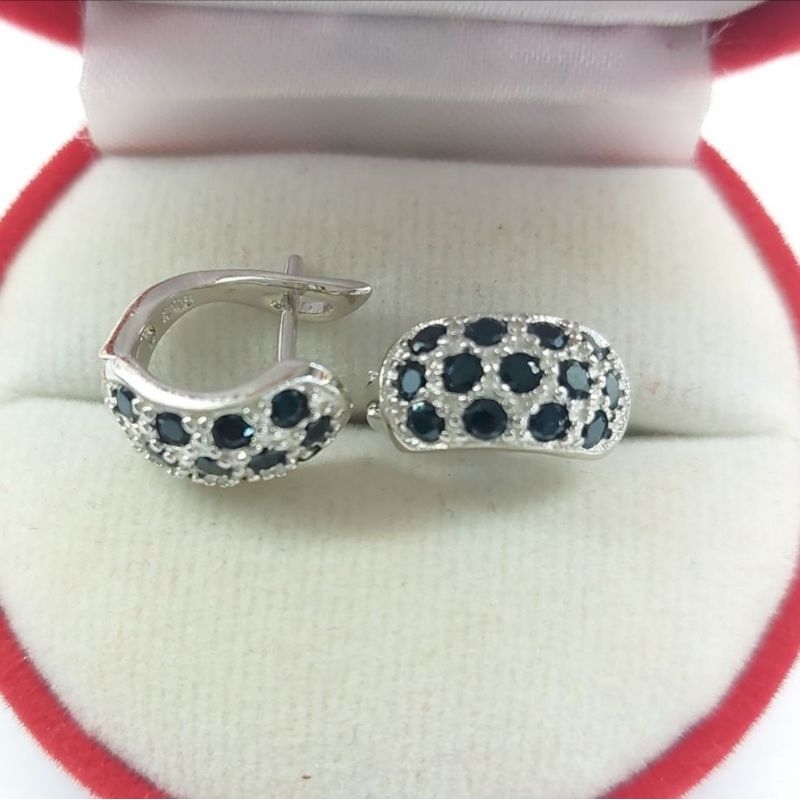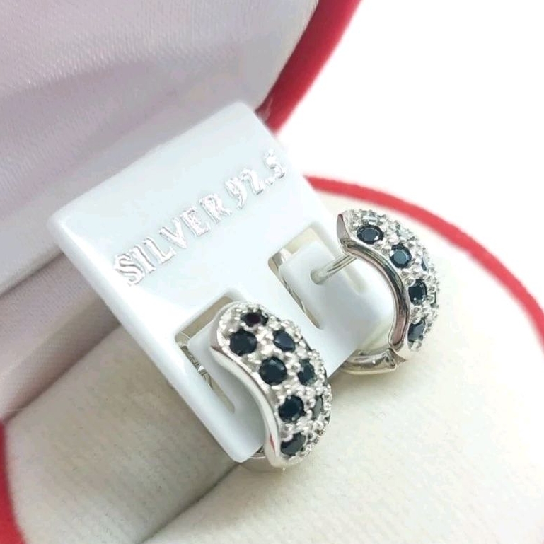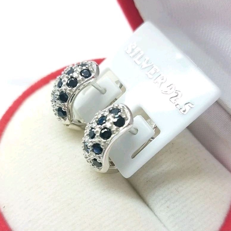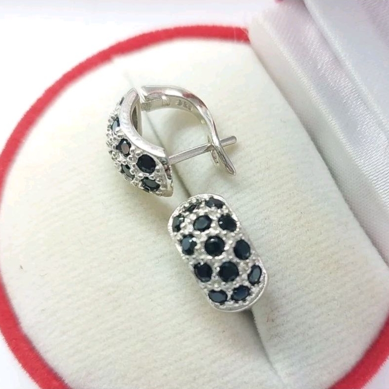 ต่างหูนิลแท้ ตัวเรือนเงินแท้ ตัวเรือนชุบทองคำขาวแท้ นิลเจียระไนเหลี่ยมพิเศษสวยงดงามมาก เมื่อกระทบกับแสง ก็จะเกิดแสงที่ระยิบสะท้อน ตัวเรือนเงินแท้ ใส่แล้วไม่แพ้ ไม่คัน ไม่ลอก ไม่ดำ
