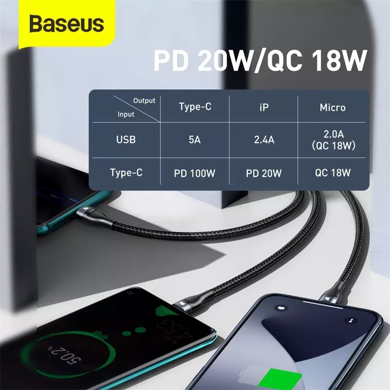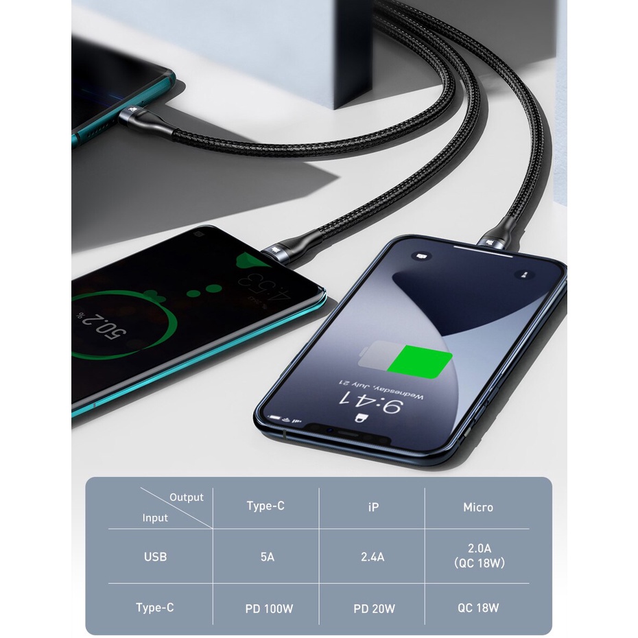 ชื่อสินค้า: Baseus Flash Series Two-for-three Fast Charging Data Cable