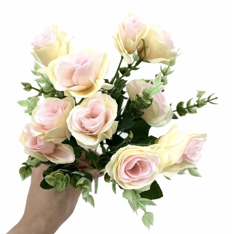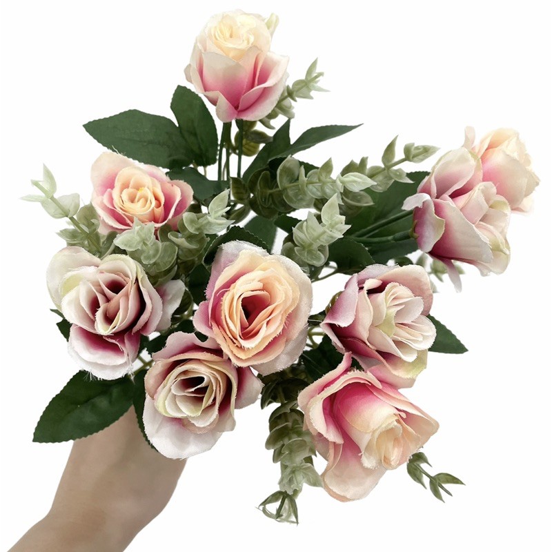 หนึ่งช่อมี10ดอกกุหลาบ ไม่รวมตัวแต่งใบแซม (ปรับระดับความสูงได้โดยการรูดดอก,ตัวแต่งขึ้นลงได้)