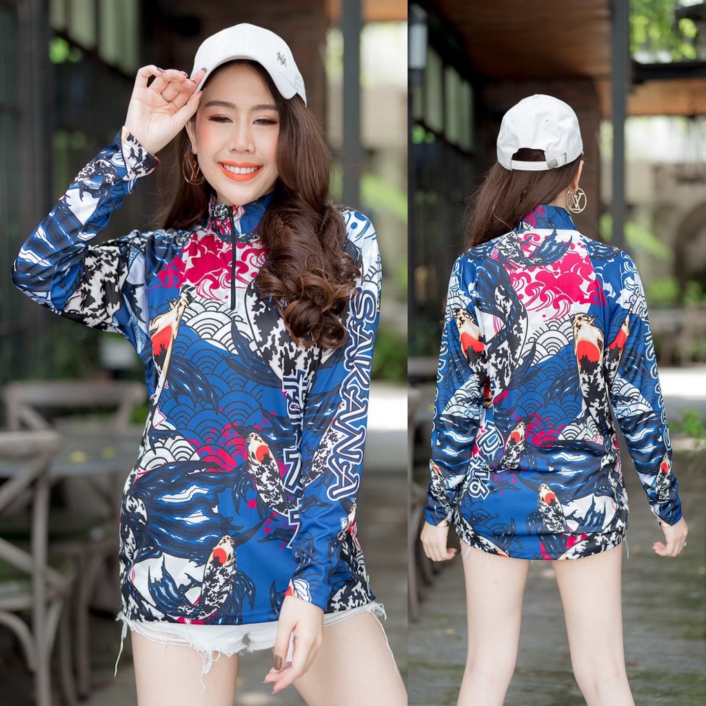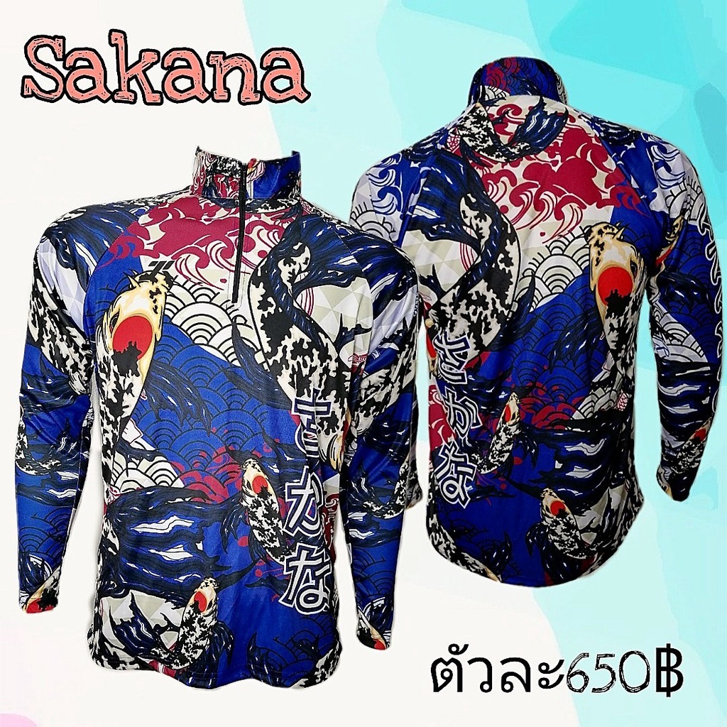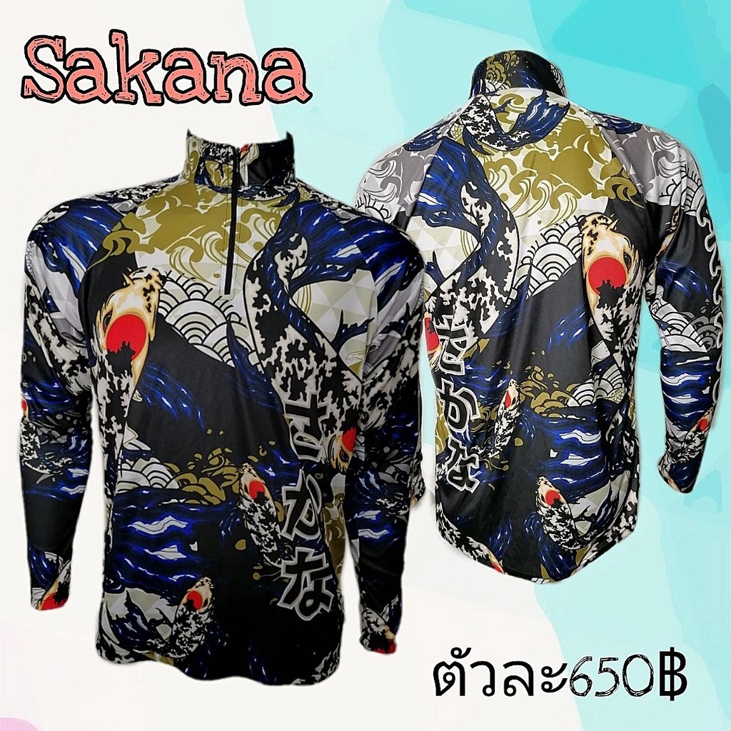หยิบใส่ตะกร้าเสื้อตกปลาแขนยาว JK Thailand กันยูวี ลาย SAKANA ป้องกันรังสี UV 80% แห้งเร็ว(แถมS