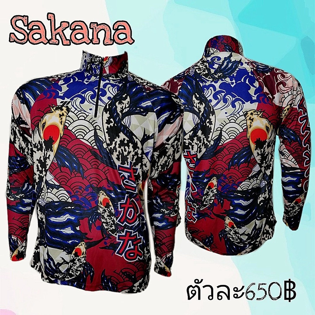 เสื้อตกปลาแขนยาว JK Thailand กันยูวี ลาย SAKANA ป้องกันรังสี UV 80% แห้งเร็ว(แถมS