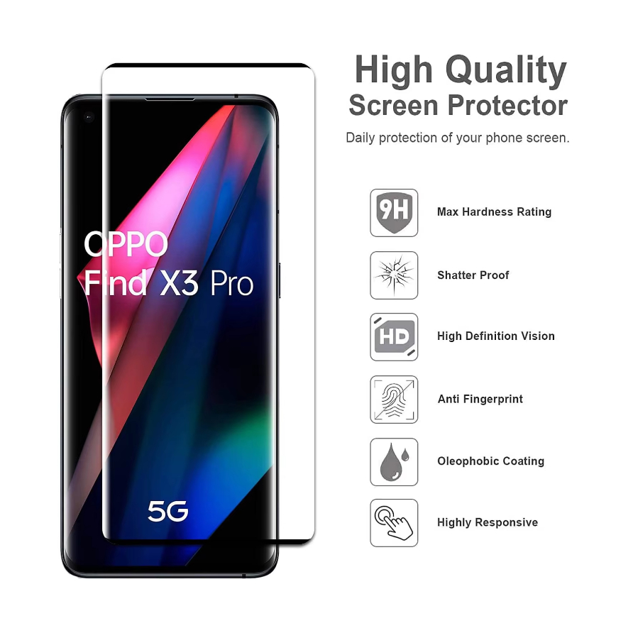 ฟิล์มกระจกเต็มจอ กาวขอบ OPPO Find X3 Pro / OPPO Find X5Pro (6.7″) 5G กาวขอบ