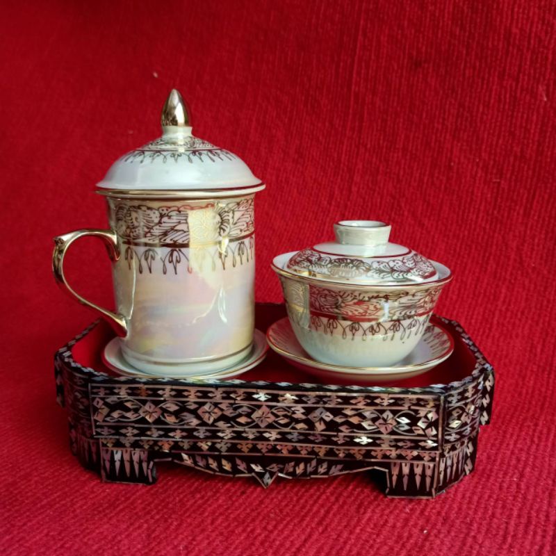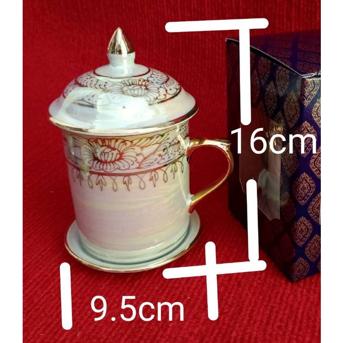 แก้วเบญจรงค์ ถ้วยชาพร้อมกี๋มุก ใส่ได้ทั้งร้อนเย็น ชุดกี๋มุก ถาดรองเซรามิคถวายพระ งานปราณีตราคาสุดคุ้ม