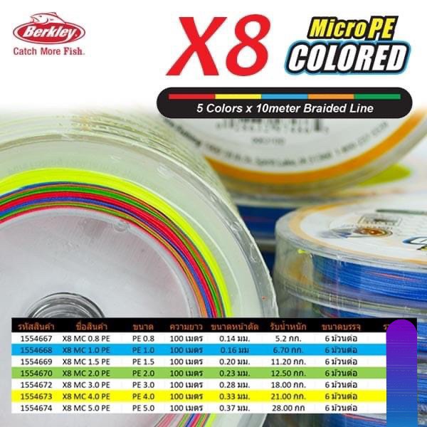 หยิบใส่ตะกร้าสาย PE berkley microPE colored ถัก8 สี multi ขนาดความยาว 100m./ 6ม้วนยาวต่อเนื่อง