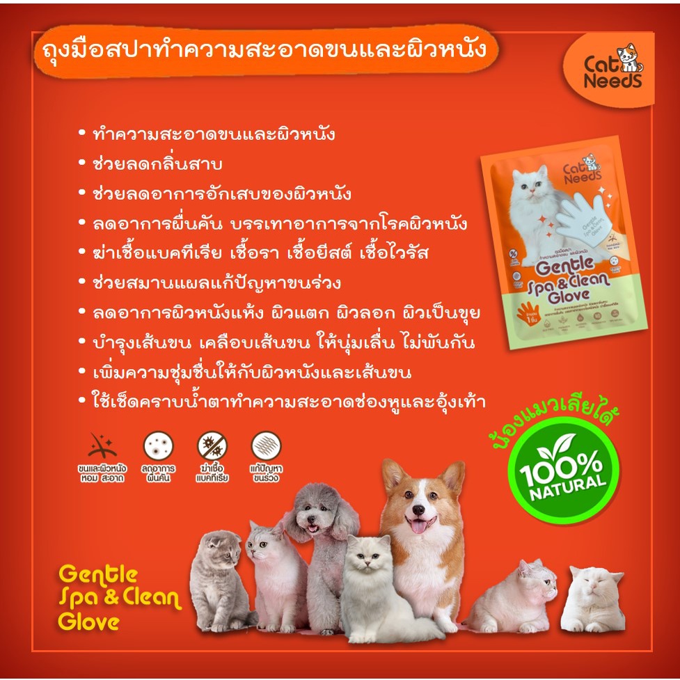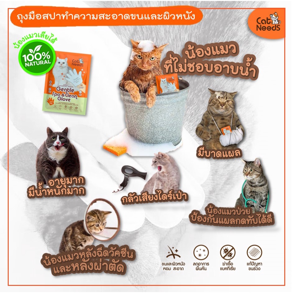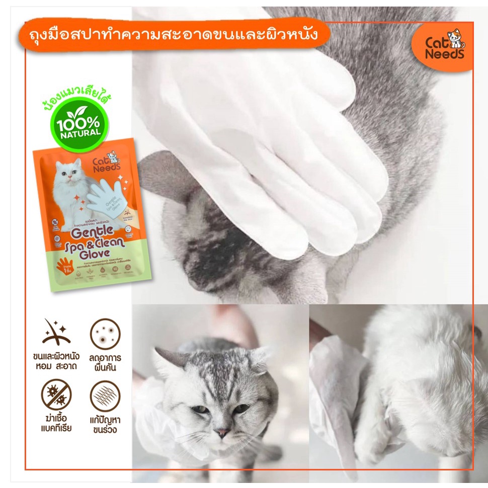 Catneeds ถุงมือสปา(ผ้าเปียก) ฆ่าเชื้อโรค เชื้อแบคทีเรีย เชื้อรา ลดกลิ่นสาป ทำความสะอาดขนและผิวหนัง