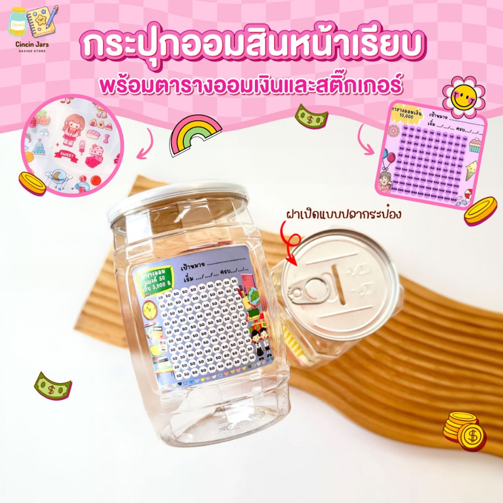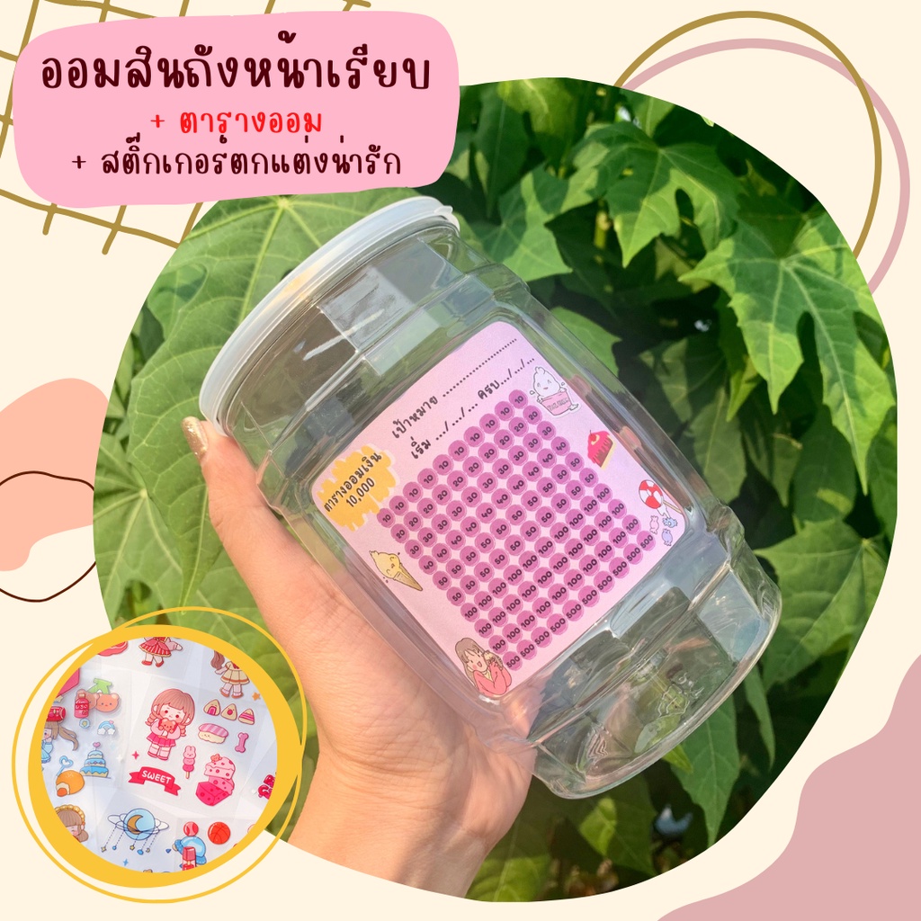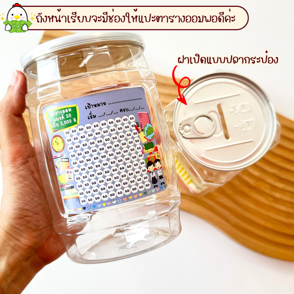 กระปุกออมสินพลาสติกใสพร้อมตารางออมเงิน