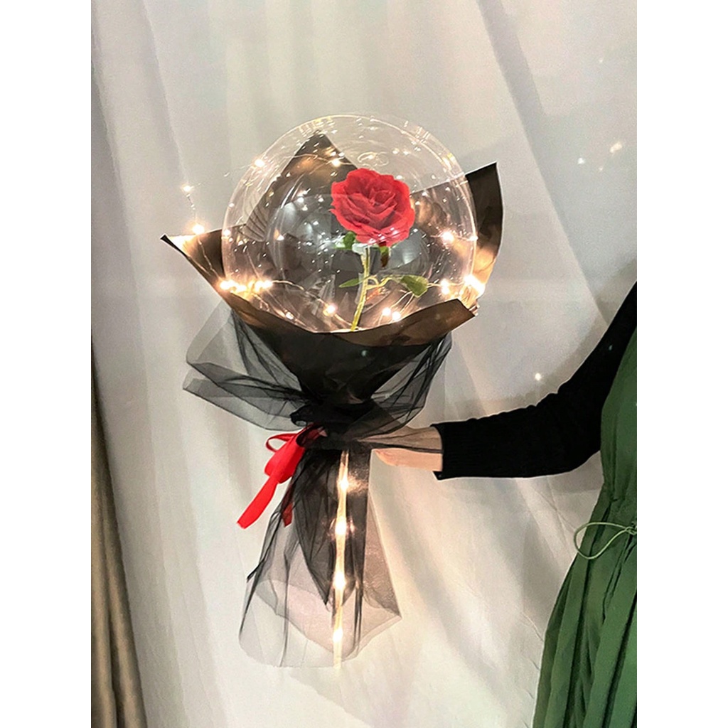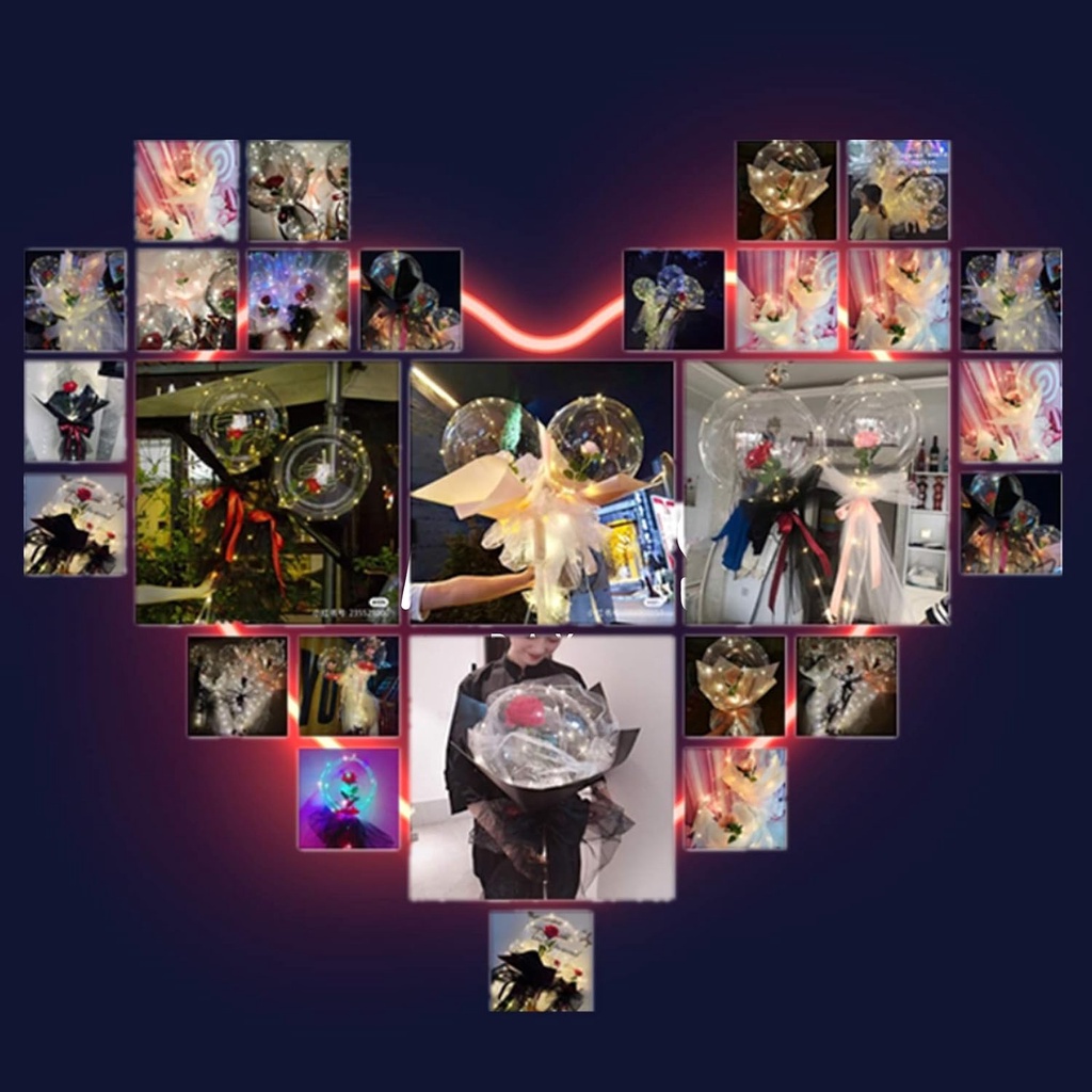 ลูกโป่งเรืองแสง LED ช่อดอกกุหลาบ ของขวัญวันวาเลนไทน์ ตกแต่งวันวาเลนไทน์ สว่างขึ้น ลูกโป่งใส พร้อมดอกกุหลาบ สําหรับคนรัก งานแต่งงาน ปาร์ตี้ วันเกิด ของขวัญ