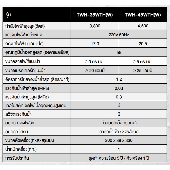 TOSHIBA เครื่องทำน้ำอุ่น รุ่น TWH-38WTH (3,800 วัตต์,สีขาว)