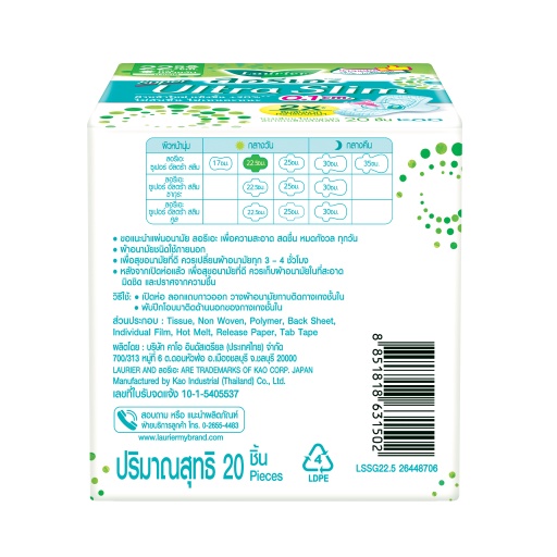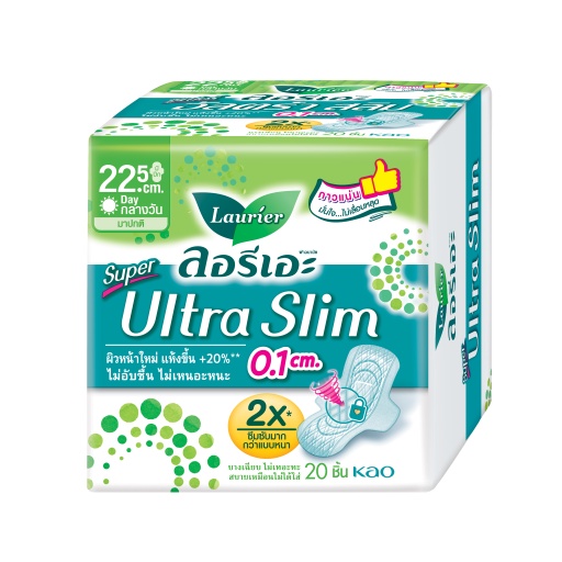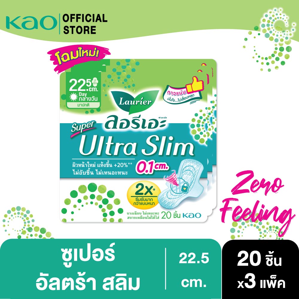 [แพ็ค3] ลอรีเอะ ซูเปอร์อัลตร้าสลิม กลางวัน ยาว 22.5 ซม 20ชิ้น LaurierSuperUltraSlim ผ้าอนามัย,แบบาง 0.1