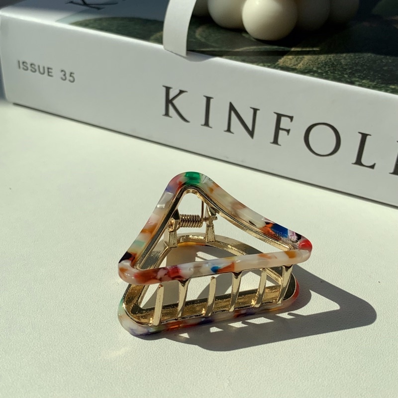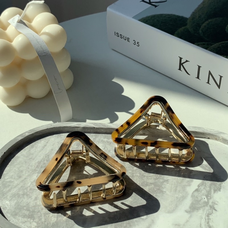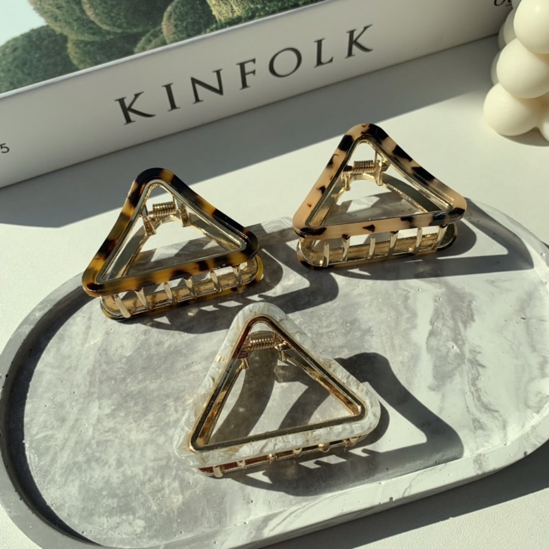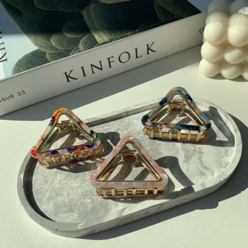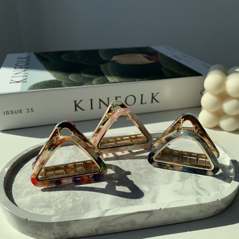 #กิ๊บติดผมทรงสามเหลี่ยม งานโลหะ ประดับอะซิเตท สำหรับคนที่ชอบกิ๊บอันไม่ใหญ่ สวยมา