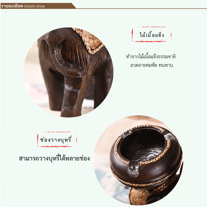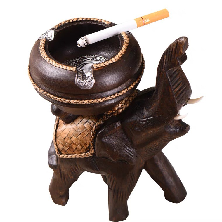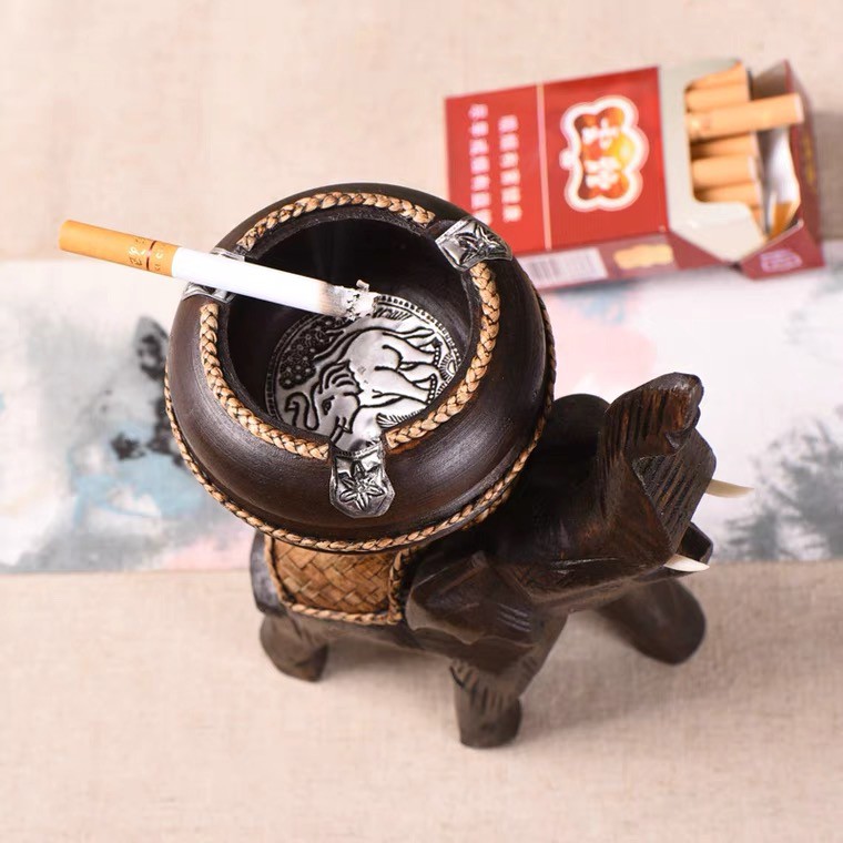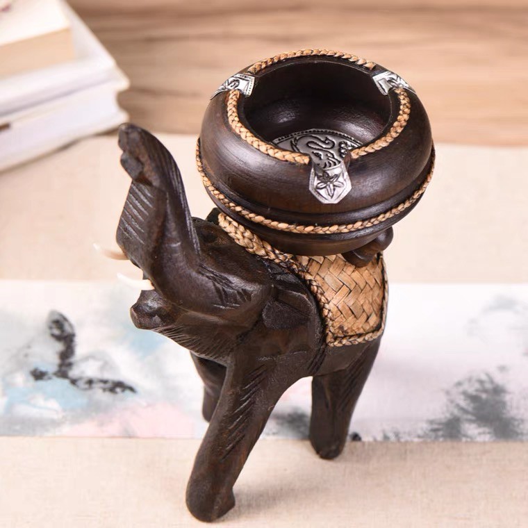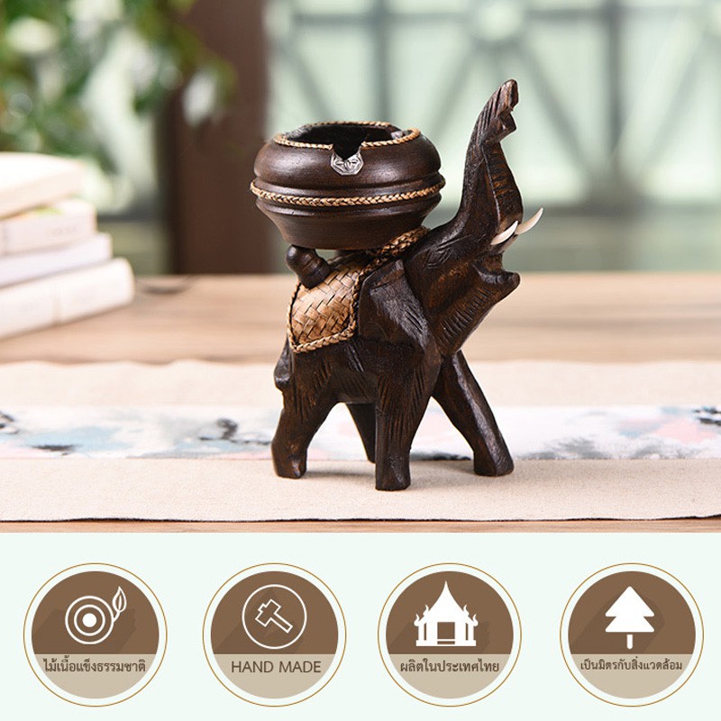 ที่เขี่ยบุหรี ช้างชูงวง ของใช้ในบ้าน ช้างชูงวงแกะสลัก น้ำหนักเบา ติดนิกเกิ้ลรูปช้าง ของฝาก เขียบุหรี ช้าง บุหรี