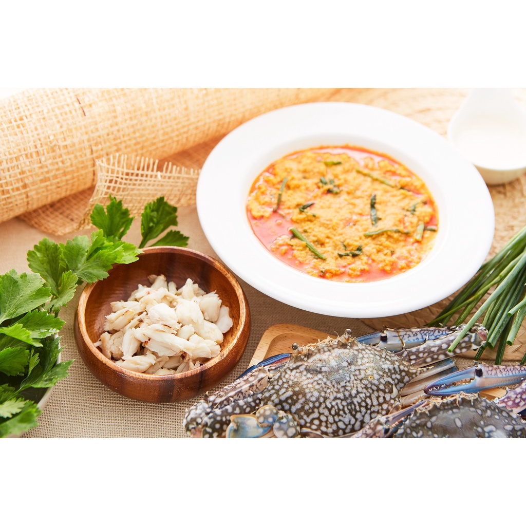 ใน 1 แพ๊คมี เครื่องผัดผงกะหรี่ และ เนื้อปู