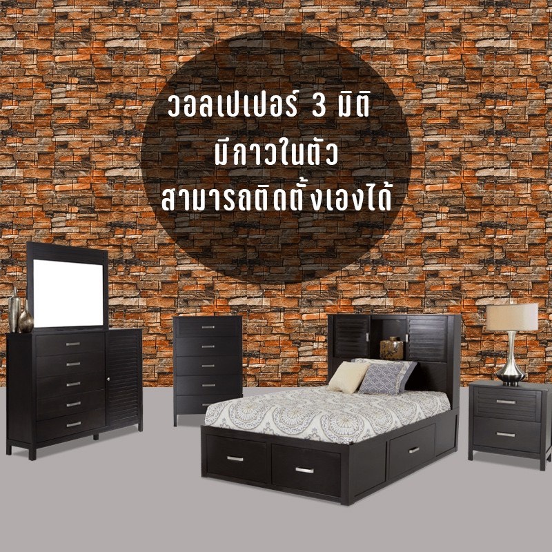 วอลเปเปอร์ติดผนัง 3 มิติ ขนาด 70×77 cm. ลายกำแพงอิฐ สีขาว มีกาวในตัว สติ๊กเกอร์ติดผนัง3D ตกแต่งห้อง Wallpaper 3D