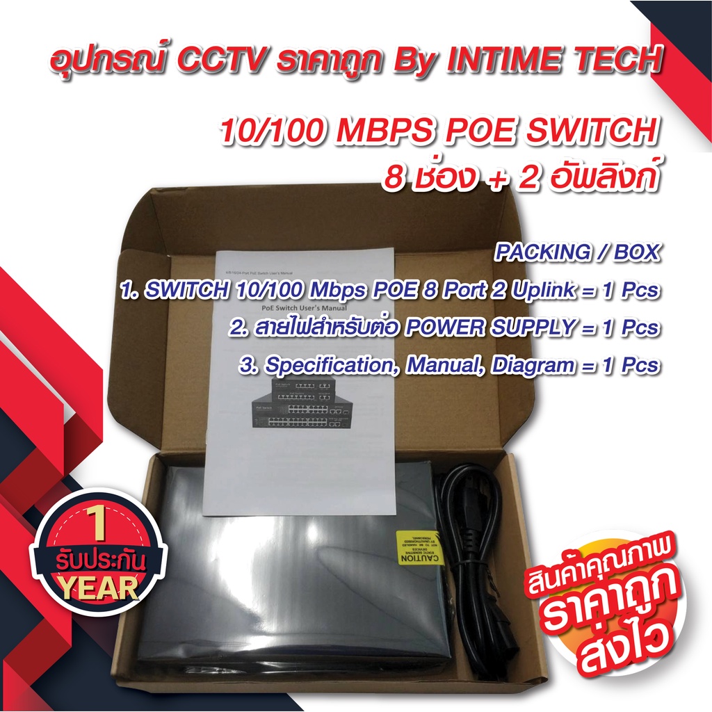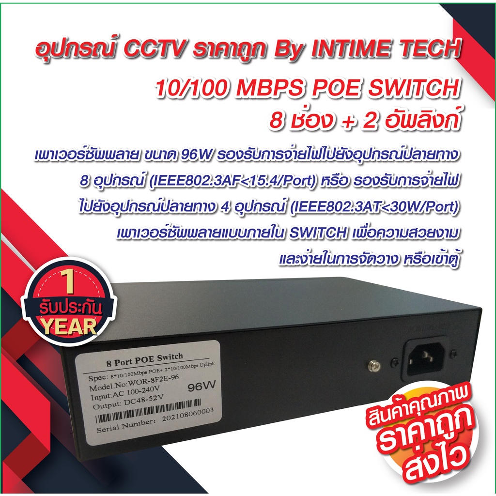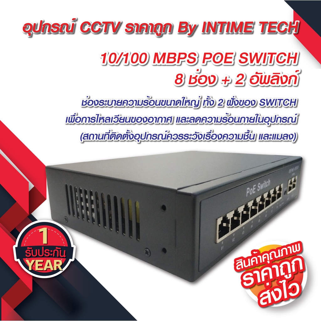 หยิบใส่ตะกร้าPOE Switch 8 Ports + 2 uplink รับประกัน 1 ปีเต็ม / SWITCH POE 8 Ports + 2 uplink 10/100 MBPS
