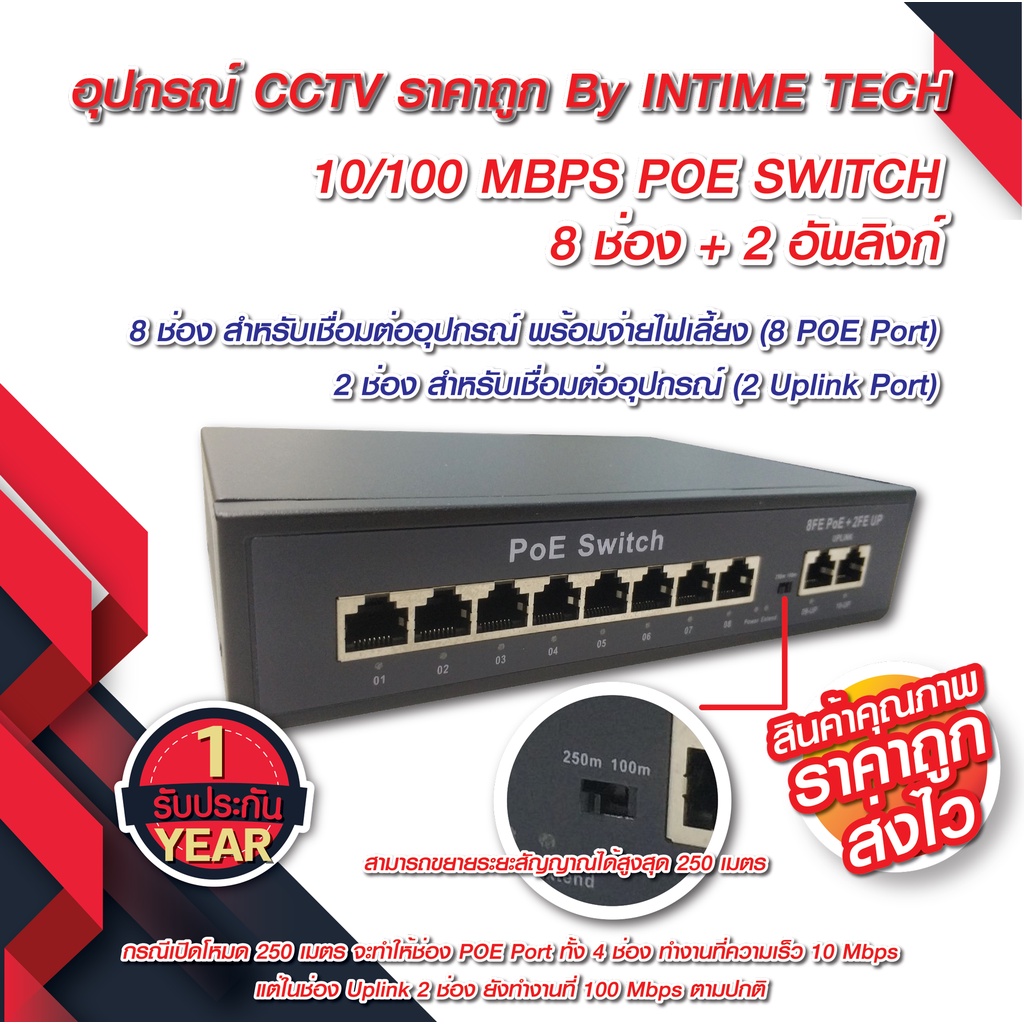 POE Switch 8 Ports + 2 uplink รับประกัน 1 ปีเต็ม / SWITCH POE 8 Ports + 2 uplink 10/100 MBPS