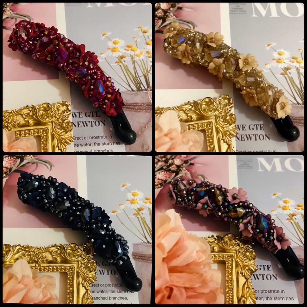 กิ๊บกล้วยงานแฮนด์เมด ขนาด 4 นิ้ว ประดับคริสตัลสุดเรียบหรู อย่างลงตัว ดีไซน์โดยคนไทย มาตรฐานส่งออกงานละเอียด สุดปราณีต ทน ตัวกิ๊บทำจากพลาสติกเกรดเอ ไม่แตกหักง่าย ใส่ได้ไม่ว่าจะมีผมยาวหนารวมถึงผมน้อยก็ใส่ได้เช่นกันค่ะ ใช้งานง่ายเล็กกระทัดรัด พกพาสะดวก