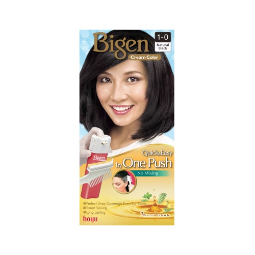 Bigen One Push Light Natural Black Cream Color No.1-0 บีเง็นครีมเปลี่ยนสีผมวันพุชดำธรรมชาติ เบอร์1-0