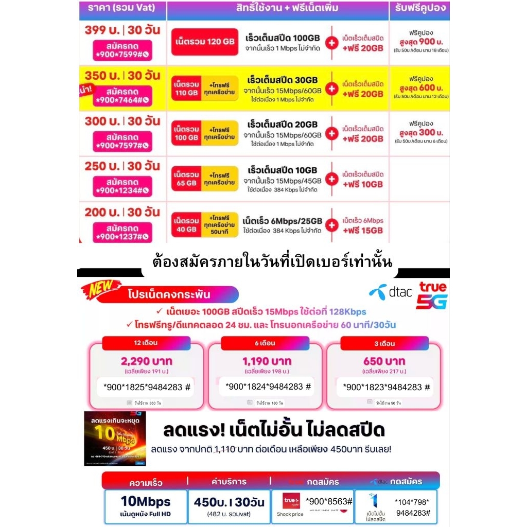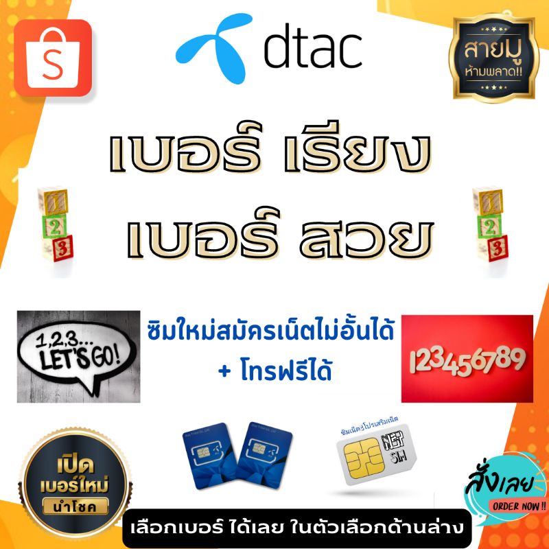 เบอร์เรียง เบอร์สวย dtac ซิมเติมเงิน ซิมใหม่ทุกเบอร์ ( สามารถสมัครเน็ตไม่อั้น + โทรฟรีได้ )