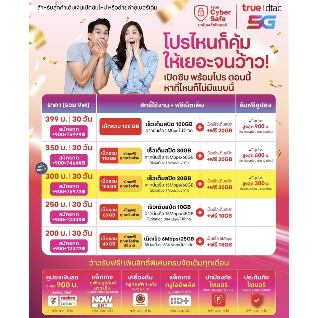 ลงทะเบียน ซิมด้วยตนเองได้ที่ Dtac Center หรือ True Shop ทั