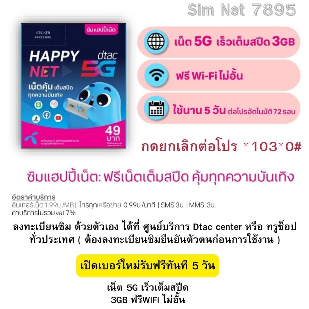 *ผู้ซื้อต้องลงทะเบียนซิมด้วยตนเอง