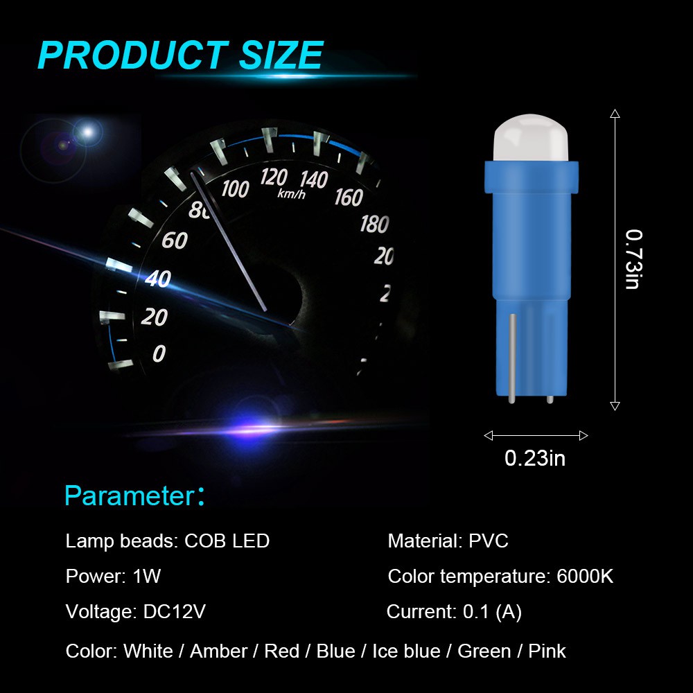 1 ชิ้น หลอดไฟ T5 COB LED เซรามิกสีแดงสีเขียวสีเหลืองสีฟ้า 12 V สําหรับรถยนต์