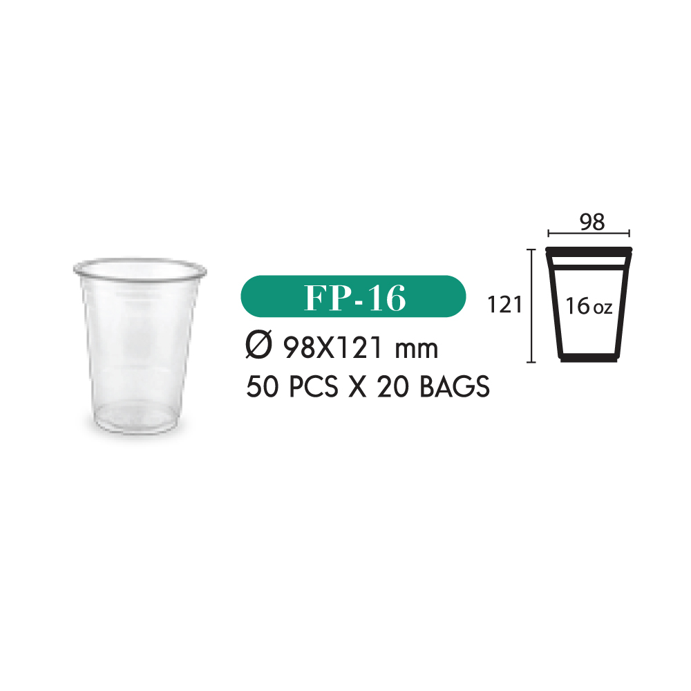 แก้วพลาสติกใส PET 16oz ปากกว้าง 98 มม หนา เหนียว ไม่แตกง่าย บรรจุลังละ 1,000 ใบ (เฉพาะแก้วไม่รวมฝา)