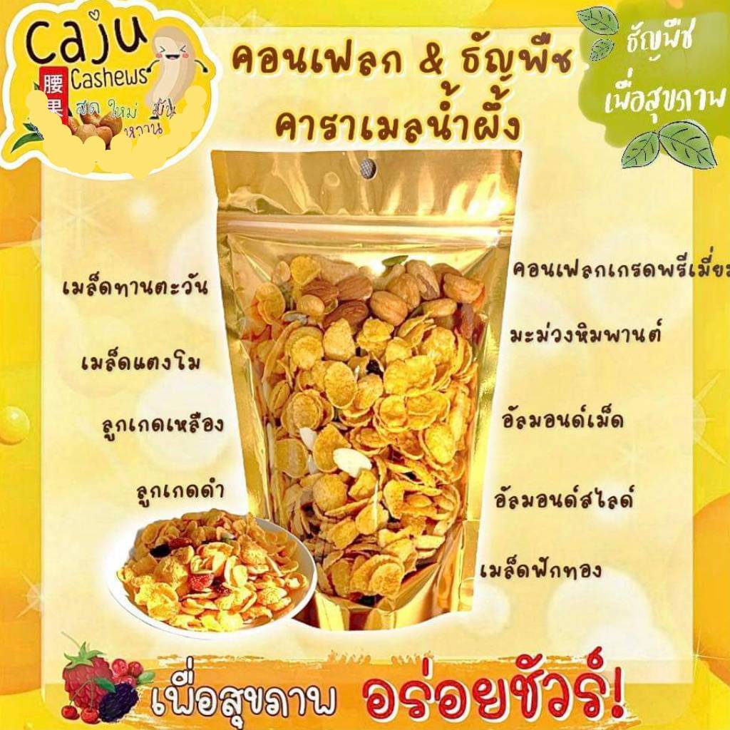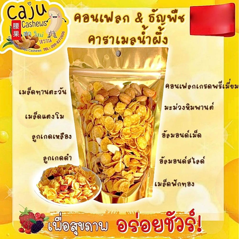 คอร์นเฟลกส์ เคลือบคาราเมลน้ำผึ้ง ผสมธัญพืช (Honey caramel cornflakes with grains) หอม กรอบ อร่อย คัดสรรสิ่งดีเพื่อสุขภาพ
