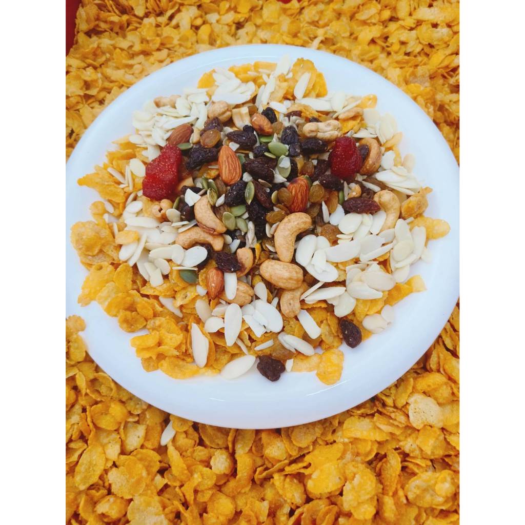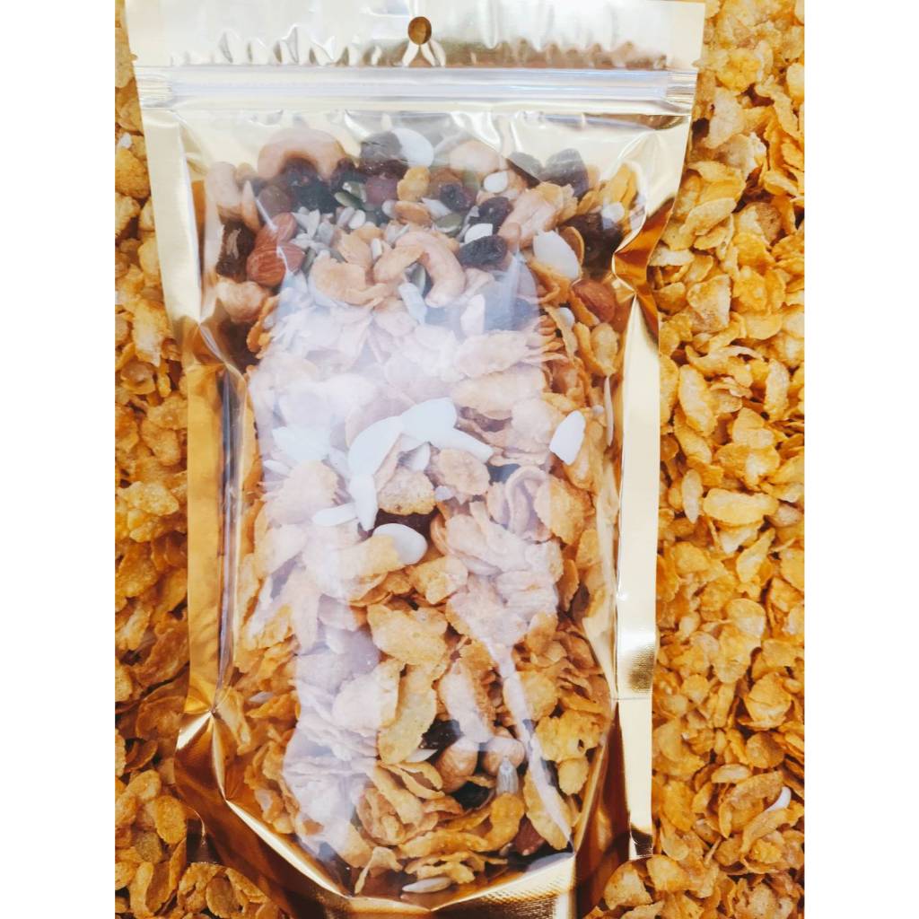 คอร์นเฟลกส์ เคลือบคาราเมลน้ำผึ้ง ผสมธัญพืช (Honey caramel cornflakes with grains) ขนาด 500g / 1kg