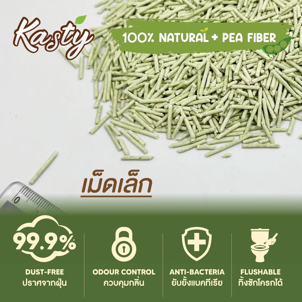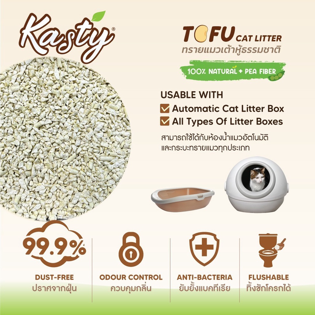 Kasty ทรายแมว เคสตี้ เต้าหู้ ถั่วลันเตา ธรรมชาติ 100% จับตัวเป็นก้อนเร็ว ทิ้งชักโครกได้ ขนาด 40 ลิตร
